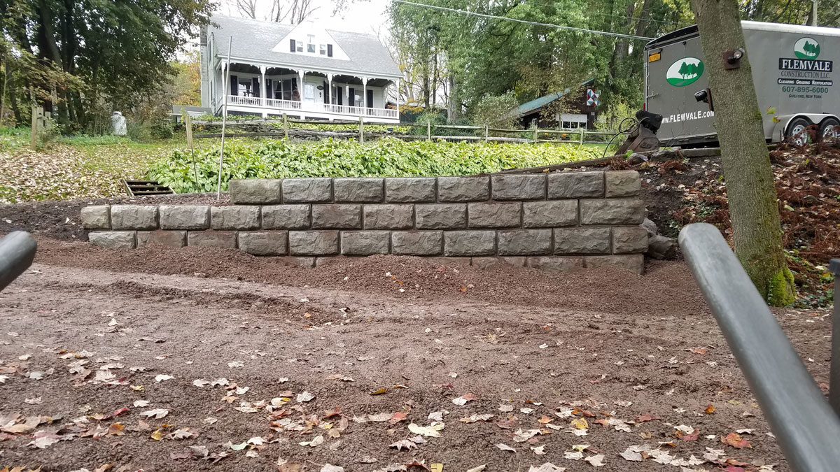 Emerson Drive and Retaining Wall Big block retaining walls to stabilize the hill side for the new driveway. Home About Us Land Management Site Development Landscaping Septic Systems Portfolio Contact ↩ Go Back