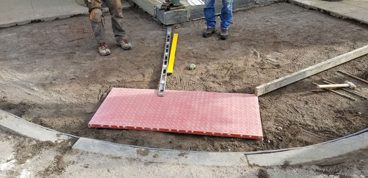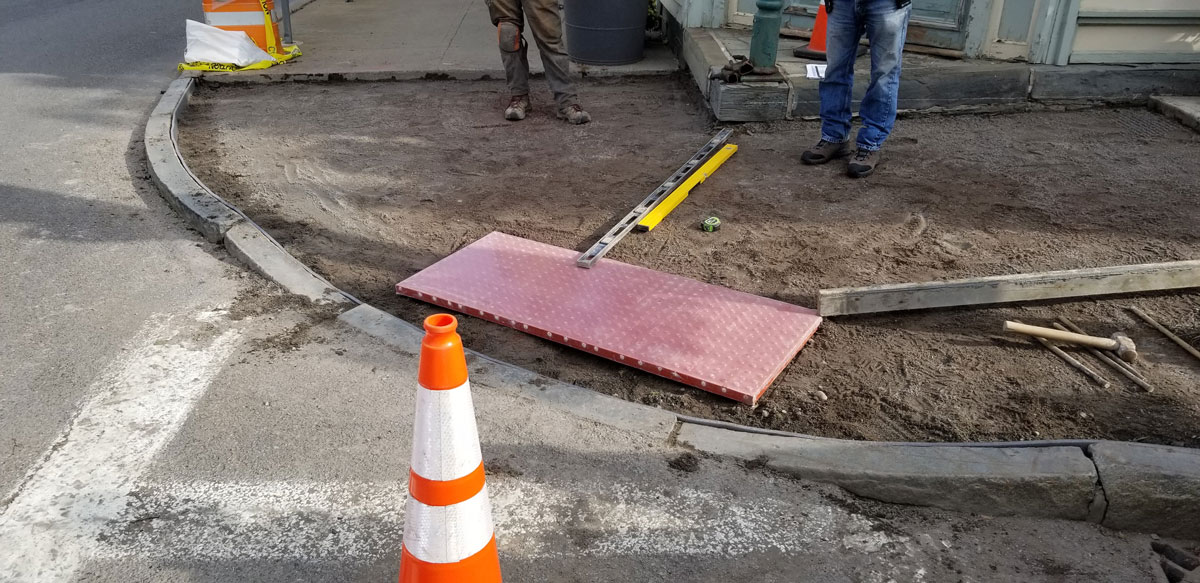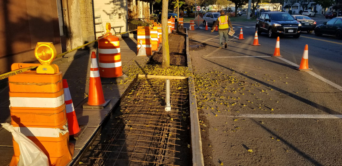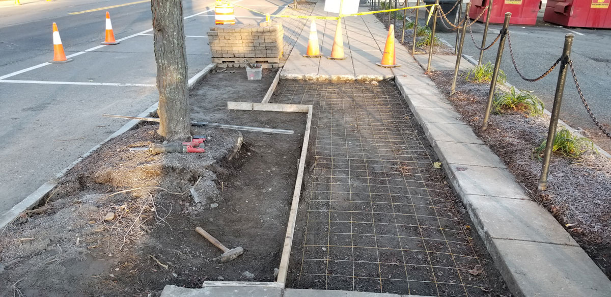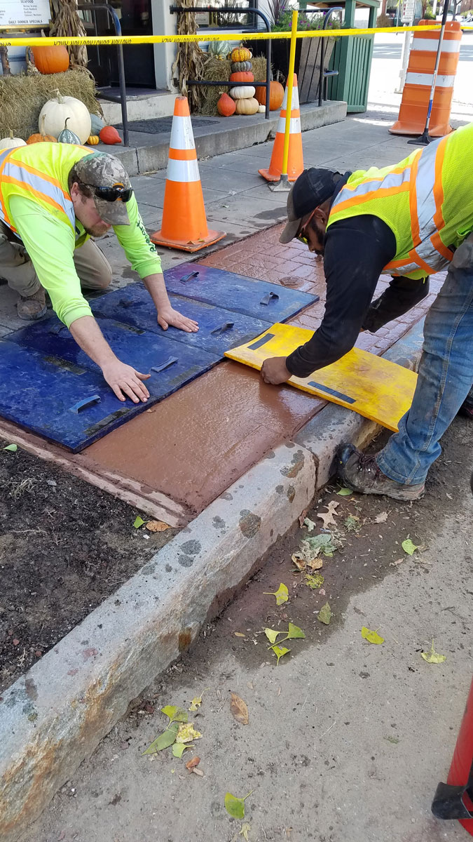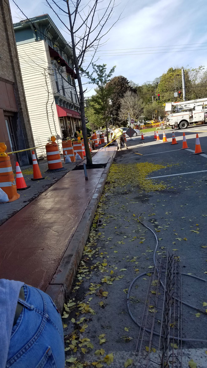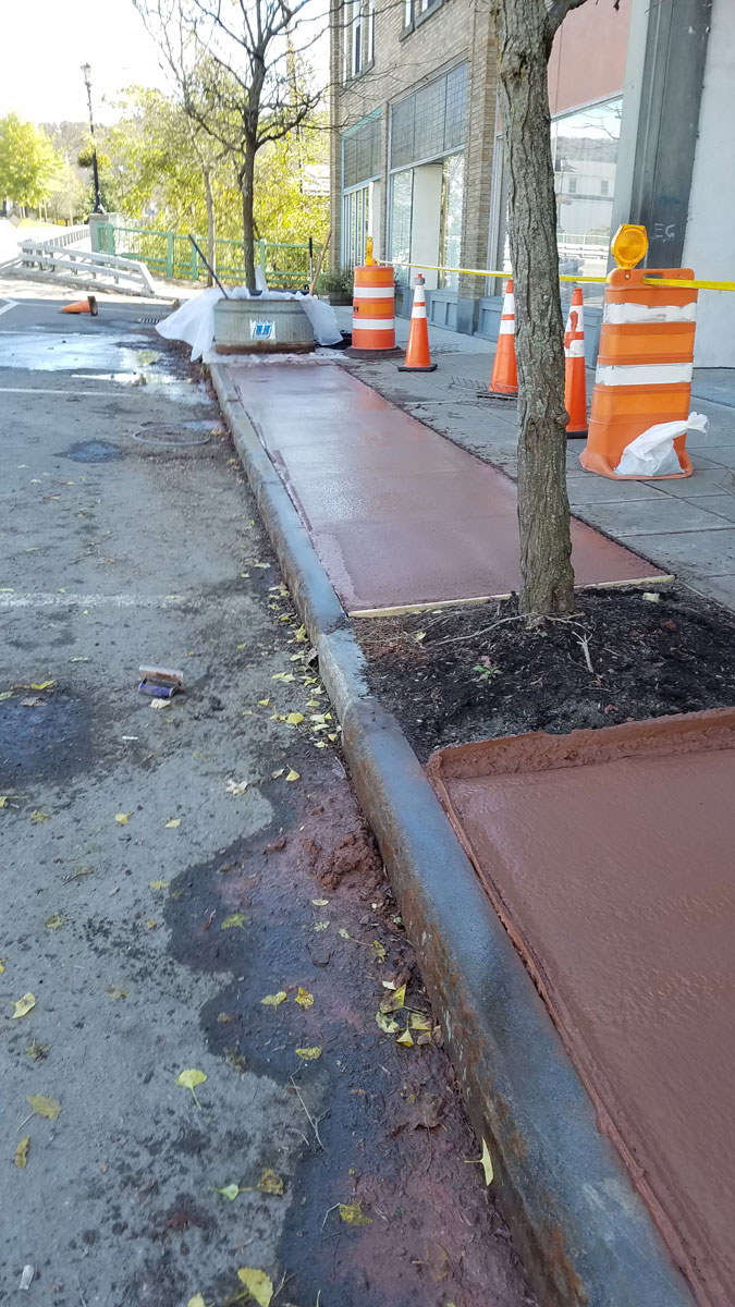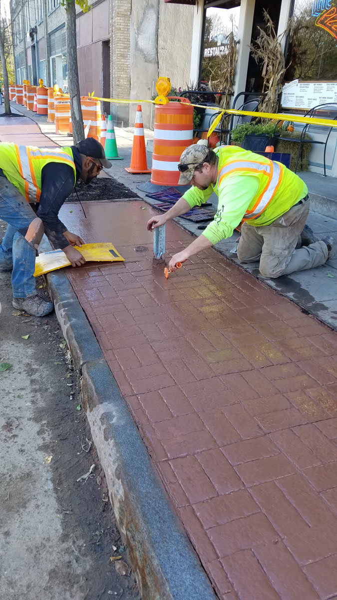 Oxford Sidewalk Stamped colored concrete between the curb and sidewalk replacing brick pavers. Home About Us Land Management Site Development Landscaping Septic Systems Portfolio Contact ↩ Go Back